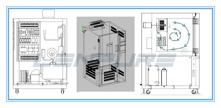 高低溫箱通過控制冷卻系統(tǒng)和加熱系統(tǒng),實(shí)現(xiàn)在預(yù)設(shè)的溫度范圍內(nèi)進(jìn)行溫度循環(huán)。溫度控制系統(tǒng)負(fù)責(zé)根據(jù)預(yù)設(shè)的環(huán)境數(shù)據(jù),精準(zhǔn)地控制加熱和制冷系統(tǒng)的運(yùn)行。加熱系統(tǒng)通常采用電熱絲或電熱管,通過空氣循環(huán)系統(tǒng)將熱量送入試驗(yàn)箱內(nèi),而制冷系統(tǒng)則利用壓縮機(jī)制冷技術(shù)進(jìn)行降溫。