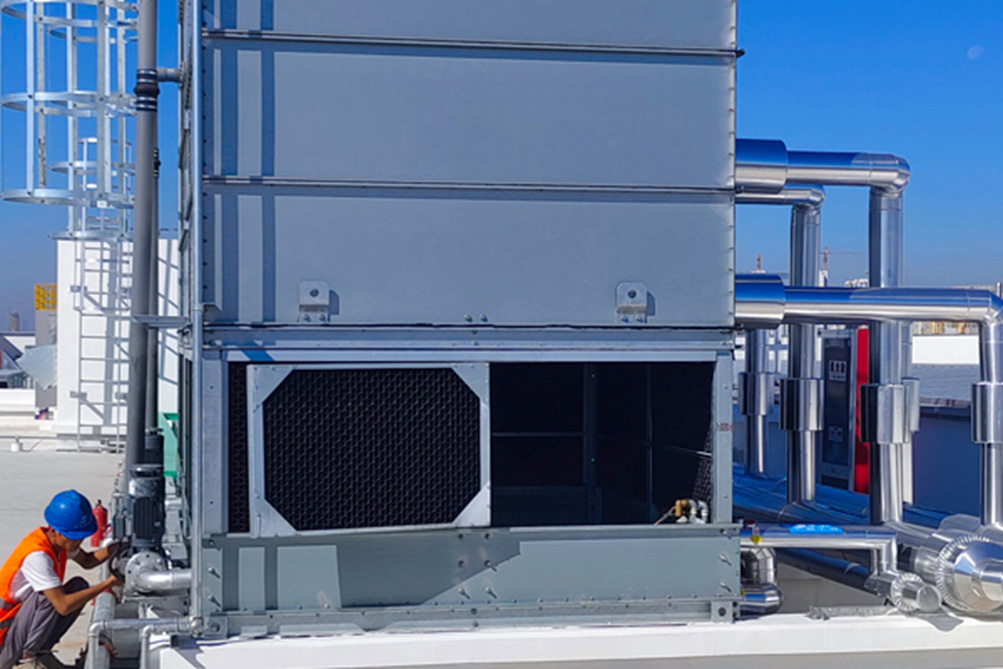 對于暫時不使用的設(shè)備,可將冷卻水塔或冰水機(jī)冷凝器的進(jìn)出口閥門關(guān)閉,放水閥門打開,將水排空即可。
